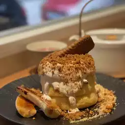 The signature soufflé pancake, super fluffy, full of egg flavor, melts immediately in the mouth, with fresh cream, Speculoos cookie crumbs, fresh banana, sea salt caramel, crispy and not too sweet, very like this flavor 👍🏻