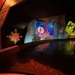 Walk through the castle and get on the boat The first stop is the Arctic🧊 While playing the world of the Arctic is really small while watching the puppets fishing🐟 The second is European puppets dressed in German, Russian, British, French costumes singing songs in their languages blended together is very good🎧 The third stop is the Middle East looks romantic😍 The fourth stop is Africa