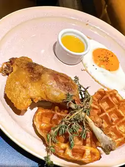 French Confit Duck Legs • Pastry Waffles🧇 The pastry waffles are very crispy and even better with fresh orange sauce😋 The duck legs are crispy and fragrant, and the meat is tender and salty😋
