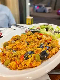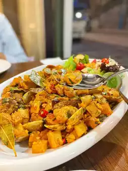 ▫️ Super large plate of traditional Portuguese seafood rice😮 Not the portion is much, even the plate is particularly large 🤣 There are lobster meat 🦞, mussels, mussels, squid 🦑, fresh shrimp 🦐, seafood portions and bites of meat, almost every bite of rice can eat seafood 😝