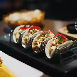 The taco was packed full of crab meat with mayonnaise and tomatoes, but too heavy flavor might have been better with rolls
