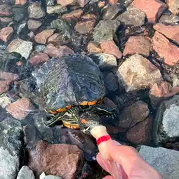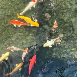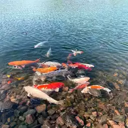 There are fat ornamental fish in the lake, and turtles that love to eat and are not afraid of people. Children especially like to feed them.