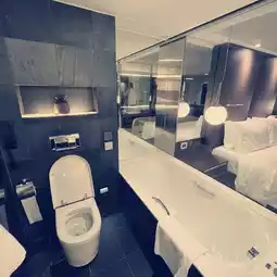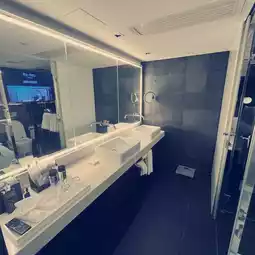 The bathroom is equipped with a bathtub and a standing bathtub, separating wet and dry areas. The wash basin is large enough for two people to use at the same time, and there is also a place to put on makeup, which is very convenient.