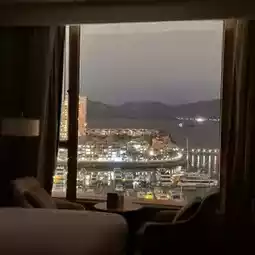 Sitting on the sofa chair can see 👀 unsuitable sea view 🌊 There are many boats on the shore all in a row the view is really beautiful 💕 Even if you live not in the sea view room corridor and elevator mouth can see the sea view also see the mountains and beach 🏖 ️ worth staying