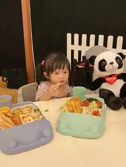 Chi Bean B👧🏻 is so happy! Recently, I went to have an afternoon tea "all you can eat" buffet with my mother's friends & aunt. There are many big and small pandas 🐼 and giraffes 🦒 parrots 🦜 and so on... many cute little animals to accompany him to eat! Chi Bean B loves the pandas 🐼 buns the most! I ate all the eyes, ears, mouth, nose and filling, leaving me with white bread 😅 It's really funny! There are also car-shaped children's meals! He also loves to sit next to the pandas and eat together and feed them, one bite at a time for me! 😋so🥰 The children are so happy, it is simply a parent-child restaurant choice.