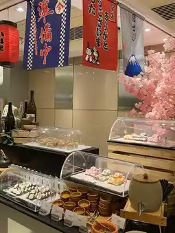 There are hot and cold plates, sushi, desserts, and cotton candies! For the hot plate I quite like its salted pork hands, fried bananas, panda buns that are not too sweet, and homemade ice cream! There are many flavors to choose from! I really can't think of which one to eat, so I have to try a little of each one! There are red beans with chan pi, yogurt, oolong tea, white rabbit candy flavor, black sesame, etc...