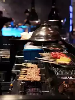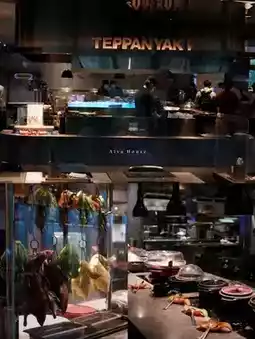 The restaurant has multiple open kitchens and multiple ready-to-cook booths