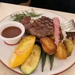 We chose the Angus rib eye, which was tender, rich in beef flavor, juicy, with okra, Italian cucumber, and potatoes