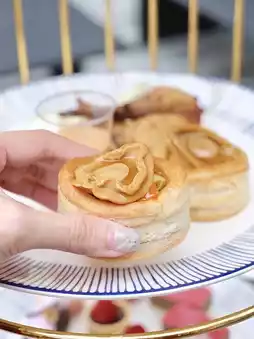 As for savory ones, there are salmon rose rolls, duck liver toast, cream cheese mushroom stuffed chicken wings, cocktail shrimp, and the must-eat abalone puff pastry box.