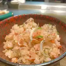 Matsu San uses plum sauce and bonito broth to make fried rice. The rice grains are distinct and dry. Then add white rice fish and sakura shrimp to make the taste more delicious.