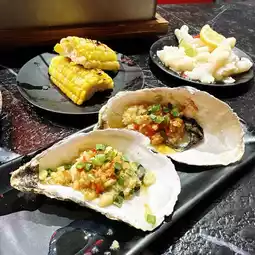 Our oysters, abalone, and scallops are delivered fresh daily. This time, we've grilled oysters. The fragrant oysters are seasoned with garlic and chili peppers, making them juicy and flavorful. I highly recommend trying them.