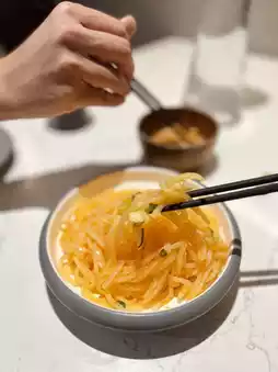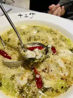 The signature dish, pickled fish, is very tasty. The soup is sour and slightly spicy, mixed with a lot of fragrant sesame. The fish fillets were tender, the portion was very large for 2 to 3 people, the soup had plenty of vegetables (asparagus and sauerkraut), and some assorted mushrooms.