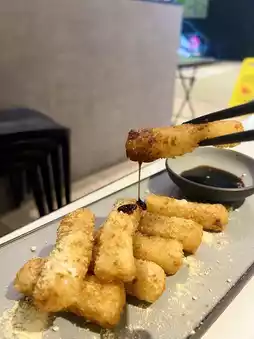 Finally, we had red sugar dumplings, fried glutinous rice cakes with red syrup to make the taste stand out, sweet and delicious.