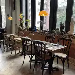 The restaurant has indoor and outdoor locations, two floors, very high ceilings, full of space, floor-to-ceiling glass allows natural light to penetrate, feel very relax!