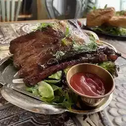 The portion is plentiful and looks beautiful! The pork ribs are slow-cooked, so the meat is particularly soft and juicy. The outer layer is crispy, and the sauce is delicious with a hint of honey. Side dishes include crispy hot fries and fresh salad vegetables.