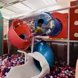 Kids and adults mingle in the ball pool 👨👩👧👦