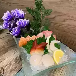 The salmon, oily fish, geobuck, scallops, and shiitake sashimi are fresh.