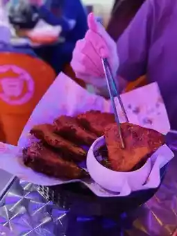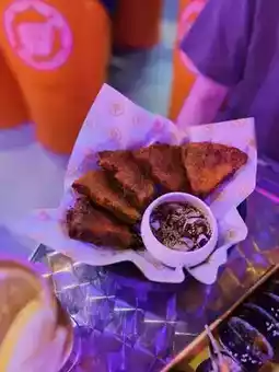 A serving of 5 large pieces, unlike the usual kimchi pancakes, this one is thick similar to sandwich cake, crispy outside and slightly spicy kimchi inside.