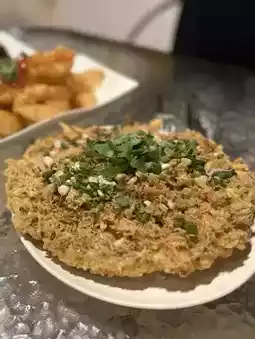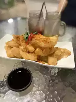 The crispy salted egg yolk is fried and the squid is not dry at all