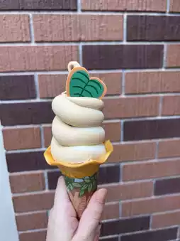 This spring promotion features a new caramel and sea salt milk ice cream. 🍦 The caramel flavor is quite strong, with little sea salt. 😂😂 The ice cream is topped with chocolate leaf decorations~ The wrapper also features Duffy's spring design~💚🧡💚🧡