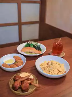 The restaurant is Japanese style, with several Japanese tatami dining areas. Remember to take off your shoes before sitting down. The food is Western-Japanese fusion style. There are not too many choices, but each one is very attractive.