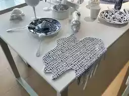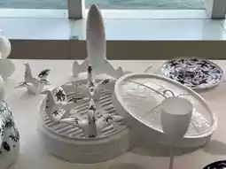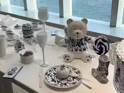 The 14-meter-long dining table is filled with more than 500 blue and white porcelain artworks by Hong Kong artist #许开娇.