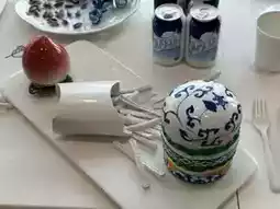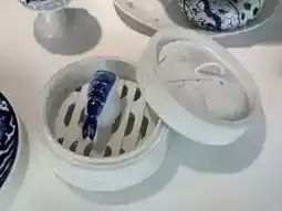 Xu Kaijiao is good at transforming the expression of traditional blue and white porcelain patterns, combining them with everyday objects to create unique works.