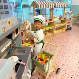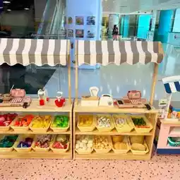 🍓 The kitchen area and canteen in the venue, you can let the children play cooking, all the food and utensils are super realistic, the children play very invested.