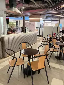 If you are tired of shopping in this mall on weekdays, you might as well go to the coffee shop in the atrium of the mall to have a cup of coffee and a crepe for a French experience.