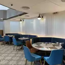 The buffet breakfast the next morning was very rich! There are both Chinese and Western foods. The Western side includes tomatoes, omelets, scrambled egg sausages, bacon, bread🥯 salad and so on. The Chinese side includes congee, stir-fried noodles, dim sum and instant soup noodles. The marine blues decoration is full of resort style.