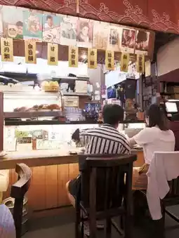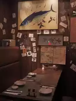🏠Environment: Decorated in dark brown wood, with a Japanese-style red lantern hanging from the facade. The square interior features a sushi bar at one end, with wooden booths and old Japanese posters covering the surrounding walls, creating a nostalgic atmosphere.