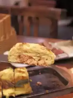 Thick tamagoyaki mentaiko 🥚 is wrapped in savory mentaiko, creating a soft and smooth texture. It has an eggy aroma and a hint of wine 🤩, perhaps because they use wine to cook it. It's unique and instantly addictive ❤️!