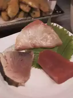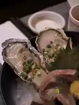 Includes large, plump, and tender Japanese oysters from Hyogo Prefecture 🦪 ($66/piece); straw-smoked bonito 🐟 $98/three-cut, slightly cooked on the outside, medium-rare, and very tender 😙; and thick-cut tuna and hamachi, tender and fluffy.
