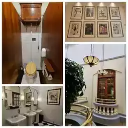 ※Bathroom: Wooden water tank with carved patterns and wooden toilet board