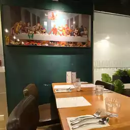 Environment: The decoration is simple yet unique, with stylish pictures on the wall and the lighting is a bit dim.