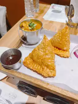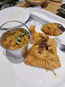Crispy on the outside, solid filling inside with different beans, chopped onions, spices, cashews and more. Served with chickpea sauce, the taste is richer🤤