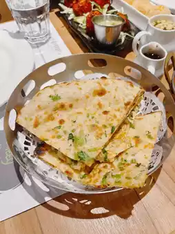 Naan bread is fluffy enough, plus the spices, the inner layer and then blended cheese, just eat it is very fragrant. Served with sauce, curry, the taste is more layered😋