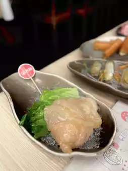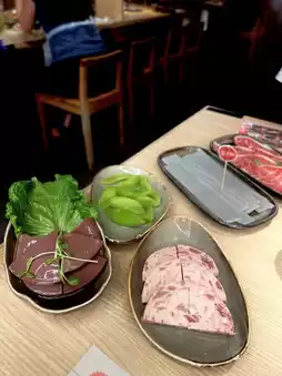 The package is rich, with American beef tendon, coral mussels, hand-beaten shrimp, fresh duck blood, rice field hairy belly, Great Wall white pig lunch meat, asparagus strips, idyllic vegetable basket, Wulong sweet potato flour, and red sugar popcorn dumplings. The beef tendon is lean but not sticky, and the coral mussels are very refreshing. The shrimp slider has a refreshing shrimp texture, quite bouncy. Put the hairy belly and duck blood in the spicy pot. It's great! Wulong sweet potato noodles with spicy soup absorb the spicy and delicious☺️ How can hot pot without lunch meat, so evil😋 Vegetables include asparagus strips, idyllic vegetable baskets are enough.