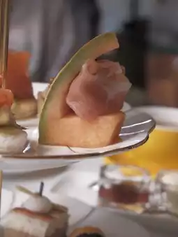 ♠️Ham and Melon🍈: A classic combination, with a thoughtful presentation😙, the first time seeing it served on the melon skin😂.