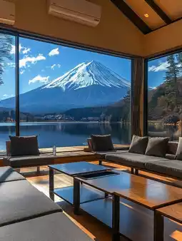 Lakefront glass cabin, simple and unpretentious afternoon tea.