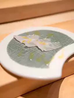 The flounder comes from Hokkaido. The crystal-clear sashimi is layered with seasoning, lightly sprinkled with rock salt to bring out the freshness, and added with a slightly sour lime juice. The flounder's natural freshness and refreshing taste are present in every slice, making each one worth savoring.