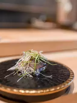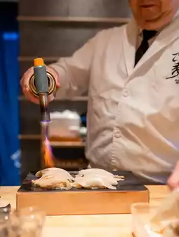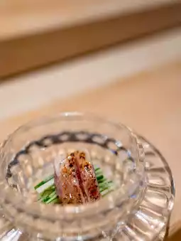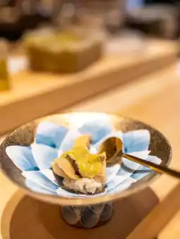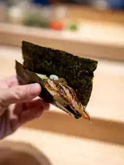 The leftmouth flounder is first grilled until it is 80% cooked, and its shiny oil is placed on top of the sushi rice with a golden surface. It is then wrapped in crispy seaweed and eaten in one bite. The rich fish oil explodes in the mouth, and the oak aroma seeps into the fish, making the aroma richer. Master Wei's rich and sweet secret sauce is the final essence of the sushi, highly recommended.