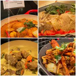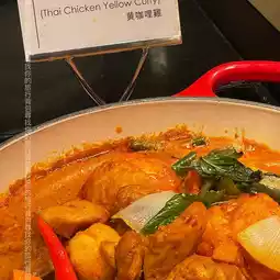 Hot dishes include Thai fried crab, fried chicken, curry chicken, duck, etc., I can't count them all. There was a surprise with the skewers, the meat was tender and not dry. The red curry duck was superb, the duck meat was very tender, served with the red curry was very tasty, the evidence was taken x3, instead the green curry beef was a bit discolored, the beef was tender, however not into the green curry flavor. In addition to Thai cuisine, there are Indian curry and a small amount of Chinese cuisine, insect fungus chicken stew, good 👌.