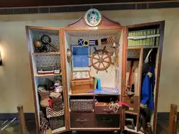 The display of adventure goods for each Disney character in the lobby really shows each character's personality if you look closely!