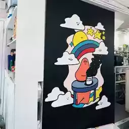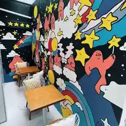 Cafe hopes that guests can relax and be inspired by admiring the artwork. The paintings on the wall are by @toballkidrawing's handwriting