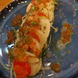 {$88} 😋 Fresh and sweet sashimi, tomato slices, with sweet and sour appetizer sauce, great!