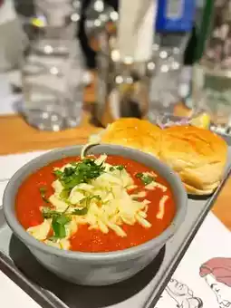 ▫️ Spicy vegetarian meat curry made with mushrooms, with cheese on top, the taste is thick and fragrant 🧀 Served with butter buns, order curry or just eat it is good 🍞