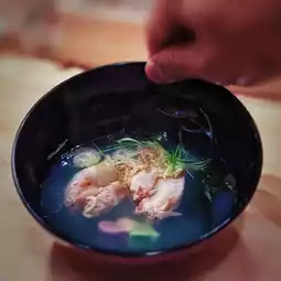 The seasonal hot pot is grilled sea bream testis marinated in soy sauce and fresh yuzu peel. The testis is smooth and delicate, with a rich flavor. The addition of yuzu peel adds a bit of freshness and sourness, balancing the testis's greasiness.