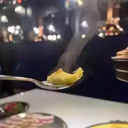 👉🏻 Eat all the above, the toasted egg on the side of the iron plate is just made, you can eat it as a dessert🤭. The baked eggs are crispy on one side and fluffy on the other. They are still smoking when they are cooked. Be careful of scorching your mouth.