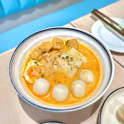 Rich ingredients, such as fish balls, fish fillets, bean sprouts, half-cooked eggs, sprouts, etc... With oil noodles as a noodle base, the laksa soup is quite rich, with a rich coconut milk flavor, a little spicy, quite appetizing! 😙